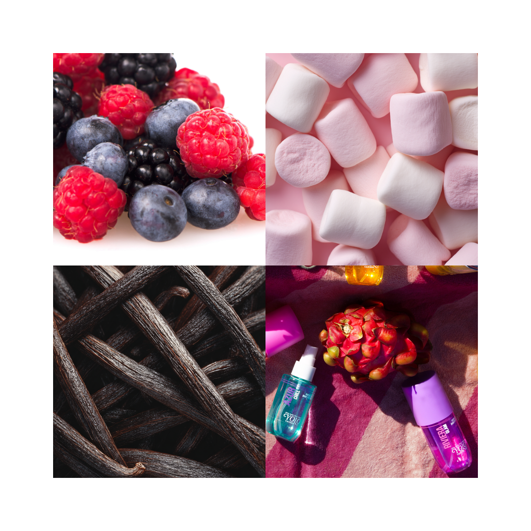Un duo parfumé mêlant fruits rouges, fleurs blanches, vanille, ambre et patchouli et des touches de marshmallow, pour une routine élégante, gourmande et résolument glamour.
